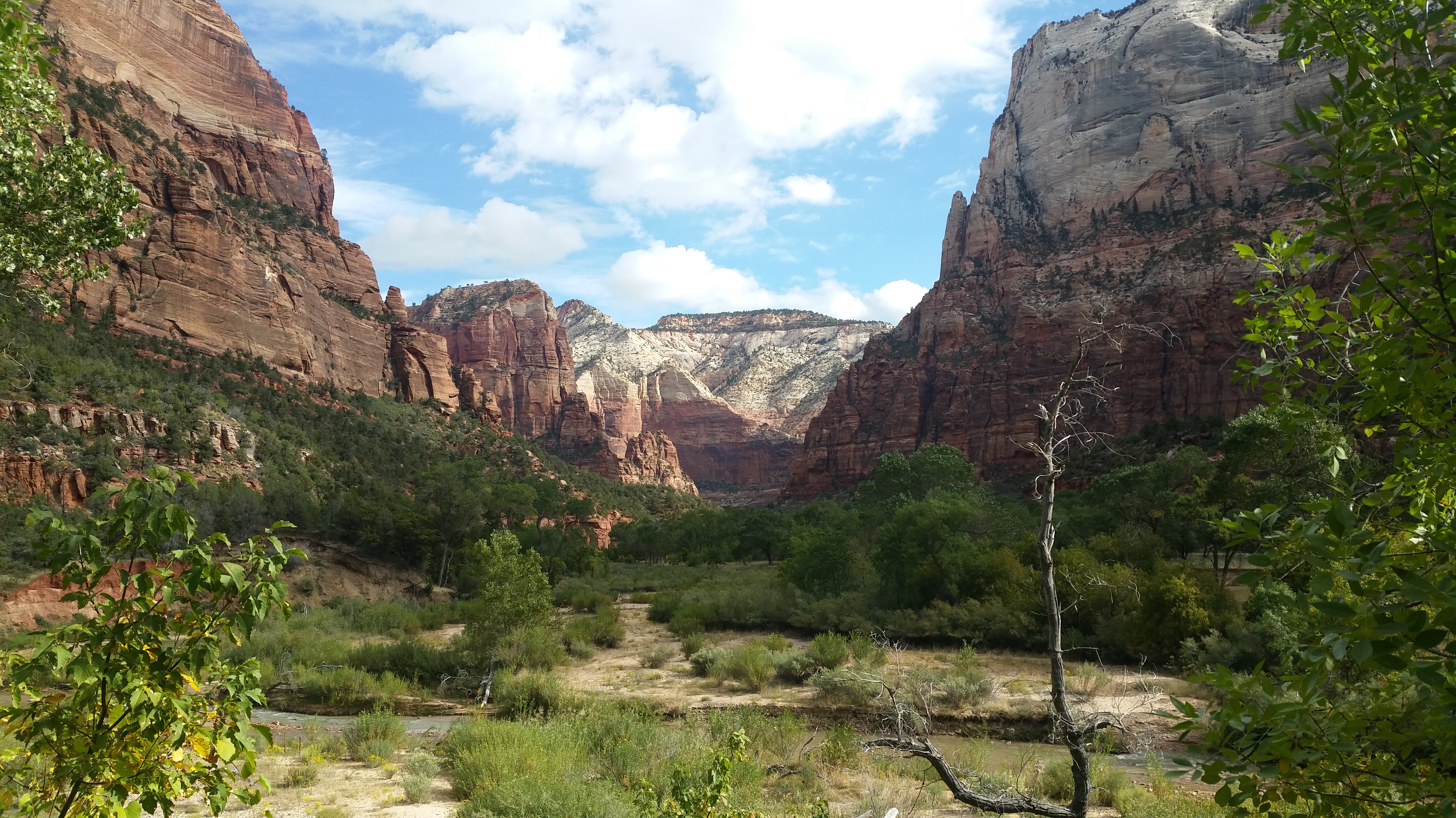 Zion n’est pas le plus connu des parcs nationaux américains mais il se place tout de même et sans aucun doute en haut de classement! Tout comme la veille à Hurricane, la couleur dominante à Zion est le rouge de sa roche si particulière, bordée du vert de sa végétation luxuriante. Comme tous les parcs du pays, il est extrêmement bien entretenu et la carte que vous recevrez à votre entrée vous informera sur tous les trails et toutes les routes qui le sillonnent. Il ne vous restera plus qu’à faire votre choix et à enfiler vos baskets pour vous aventurer dans ces paysages tantôt lunaires, tantôt tropicaux, tantôt désertiques, mais toujours magiques. Les meilleurs marcheurs iront jusqu’à Angels Landing pour un point de vue exceptionnel.