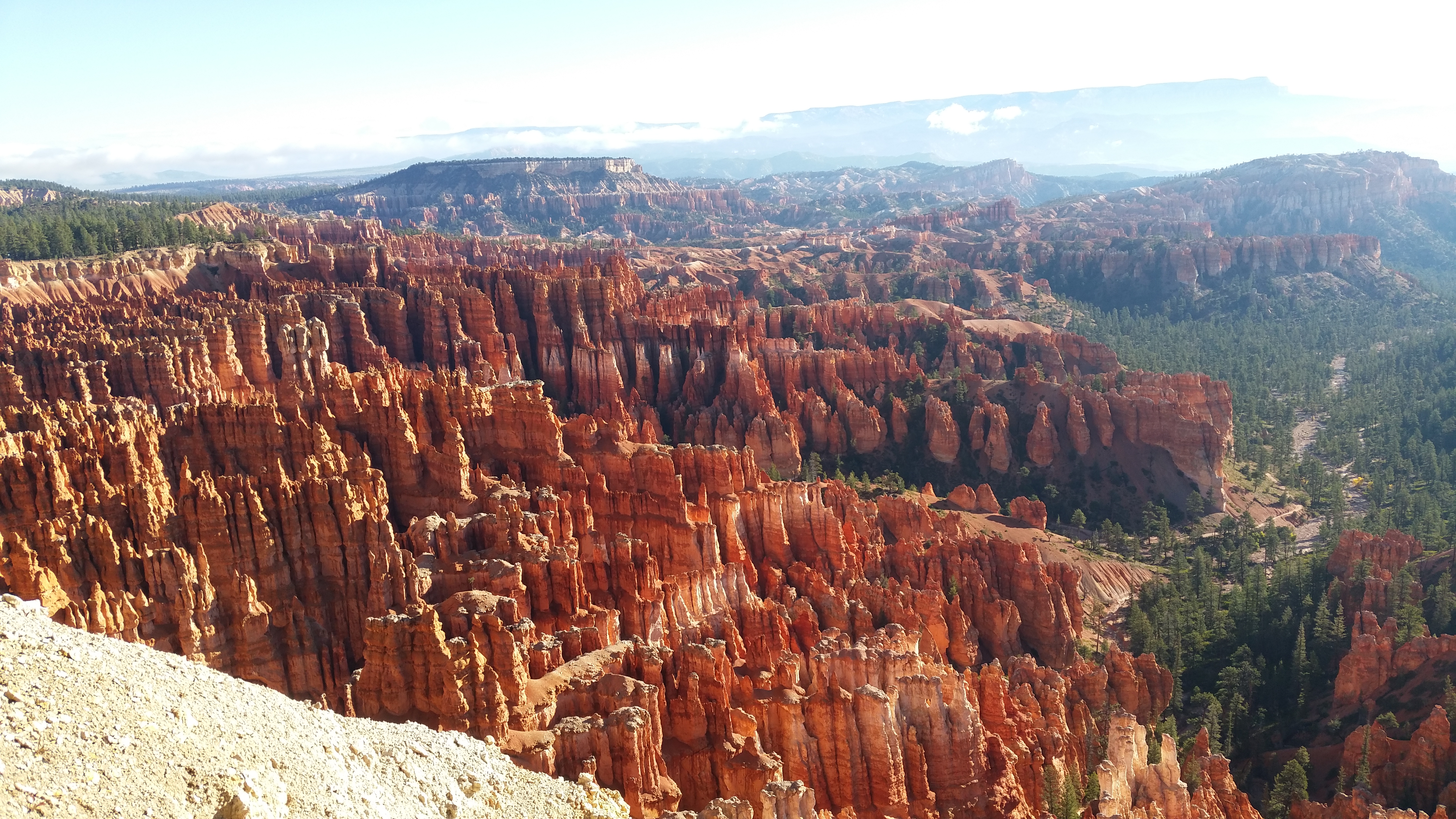 Panguitch n’a rien de spécial, c’est une toute petite ville où vous trouverez des motels bon marché et un resto de cowboys, le Cowboy’s Smokehouse Café! Une déco pittoresque et des steaks qui débordent de l’assiette, bref, un lieu sorti tout droit de l’Amérique des westerns. A ne pas manquer! Le lendemain matin, partez tôt et dirigez-vous vers le parc national de Bryce Canyon. Vous pouvez y effectuer des randonnées mais LE point de vue à ne pas rater peut suffire à vous satisfaire avant de poursuivre votre route. En effet, depuis Inspiration Point (accessible en voiture) vous serez aux premières loges pour admirer cette merveilleuse formation rocheuse.